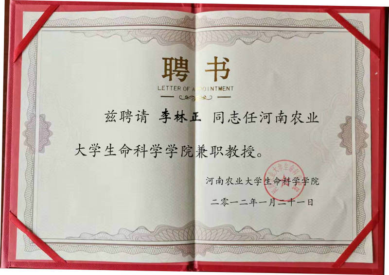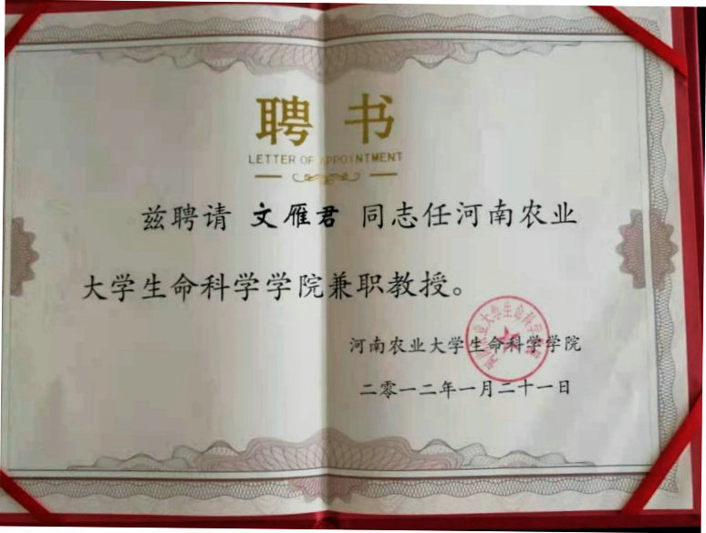河南农业大学生命科学学院聘请文雁君、李林正为兼职教授