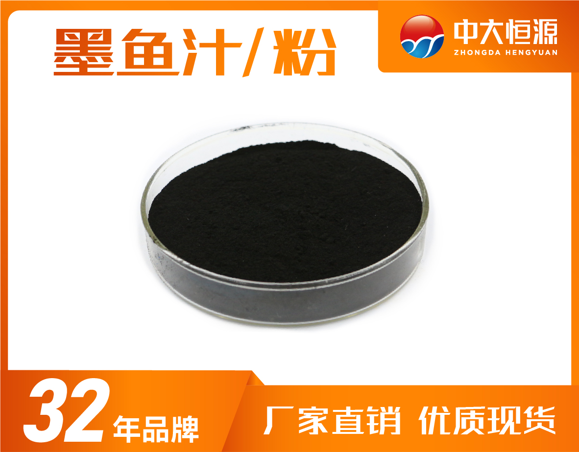 墨鱼汁具有较高的营养价值,可以当调味品使用,同时具有一定的药用价值,此外还可以对食品着色,纯天然来源,制作成墨鱼汁粉,腥味小,易分散于水,使用方便,可作为调料品食用,同时可对食物着色,适用范围广,光热稳定性好,应用效果黑色。